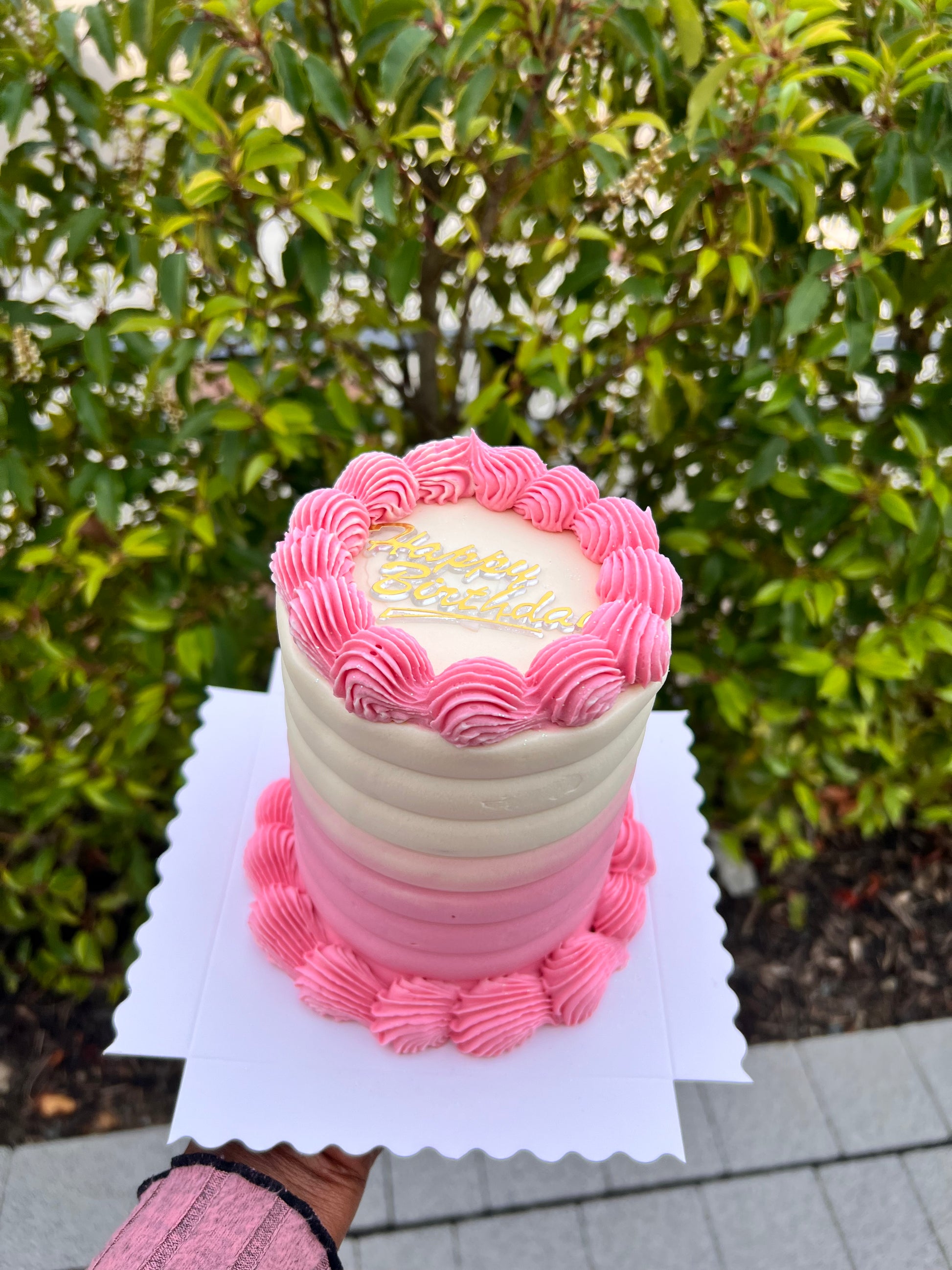 Our adorable 4-inch bento cake is the perfect personal-sized treat for any occasion! This compact delight is ideal for birthdays, anniversaries, or just because. Packaged in a charming bento box. SERVES 4-5.BUTTERCREAM CAKE