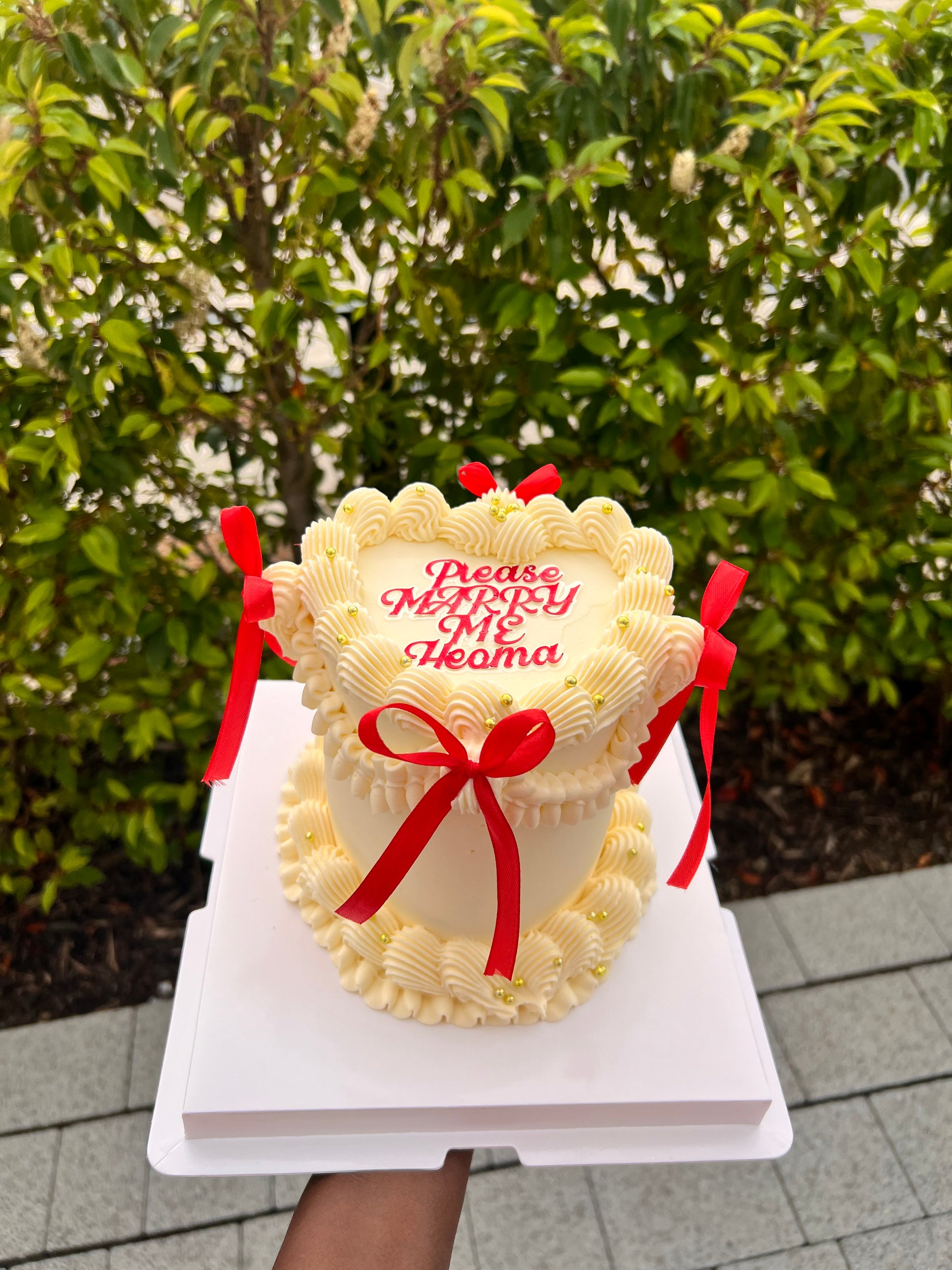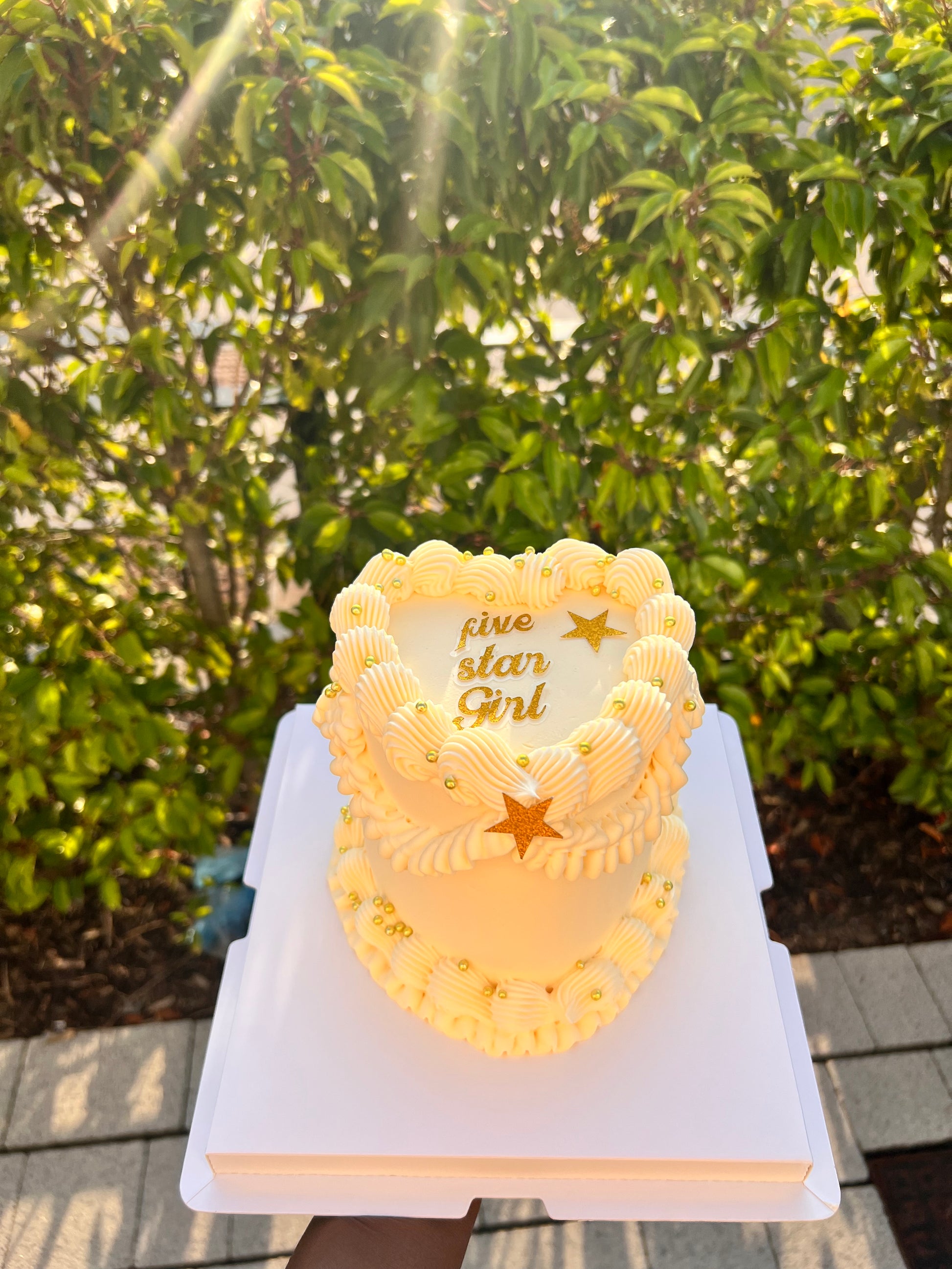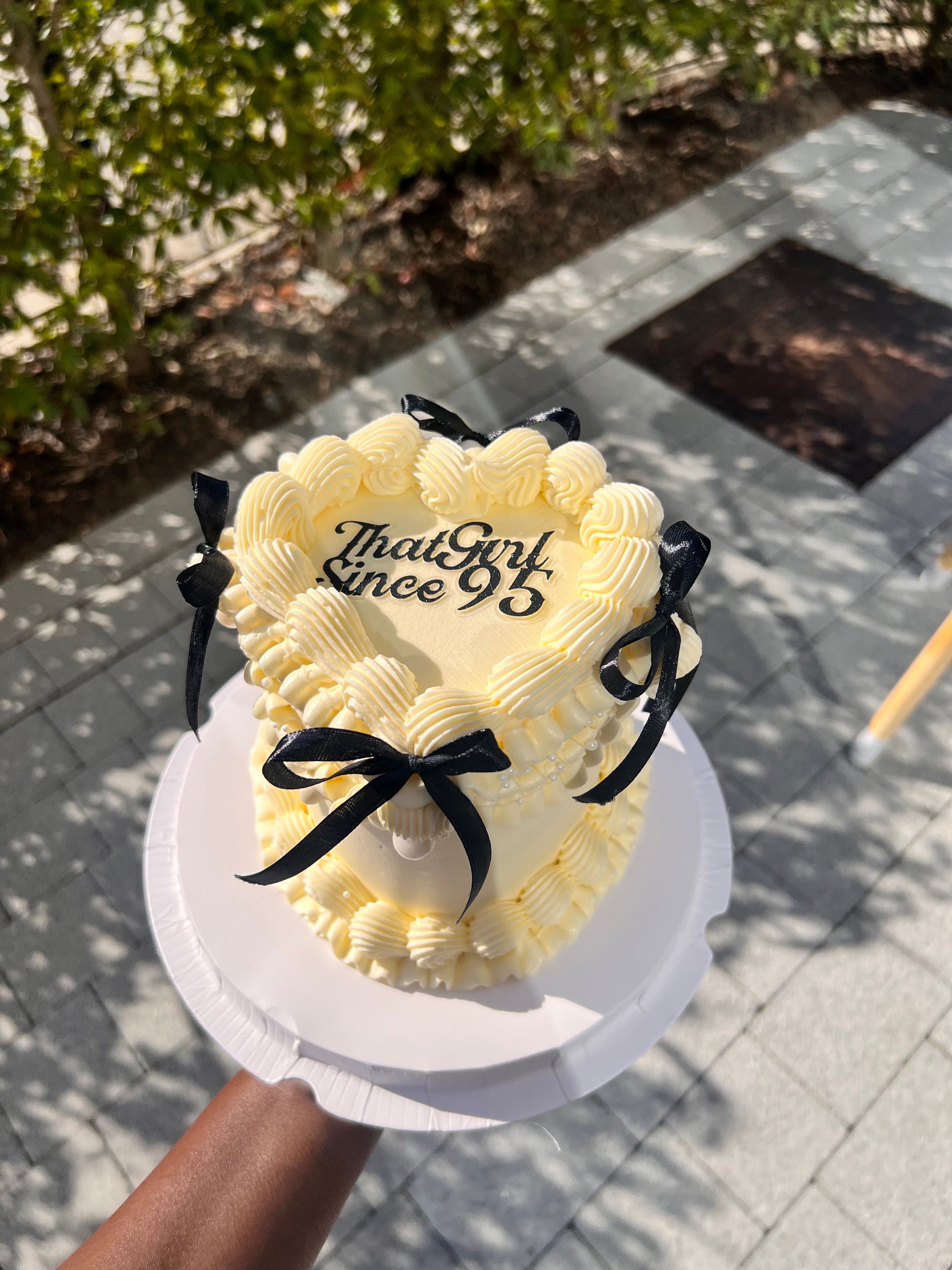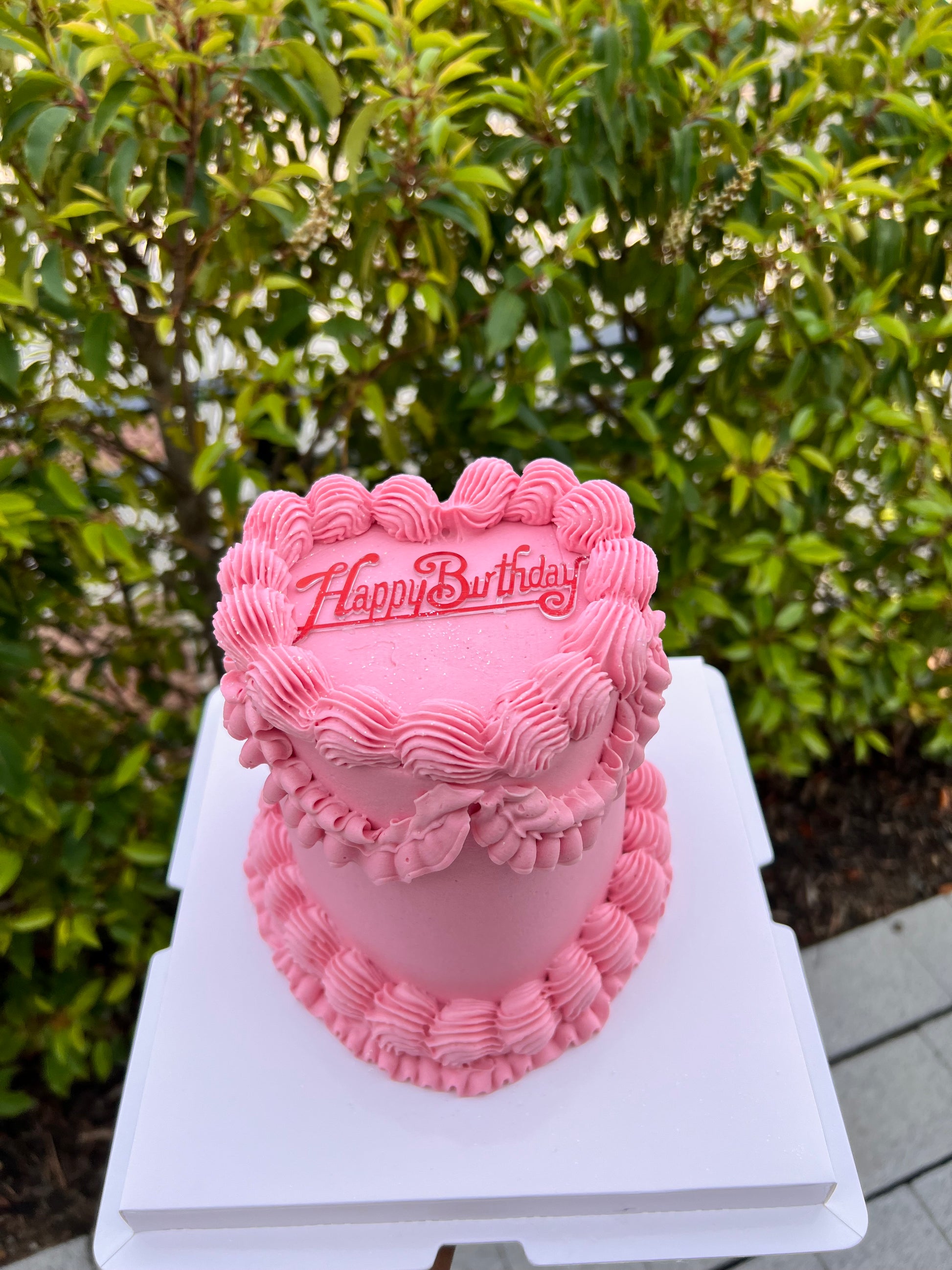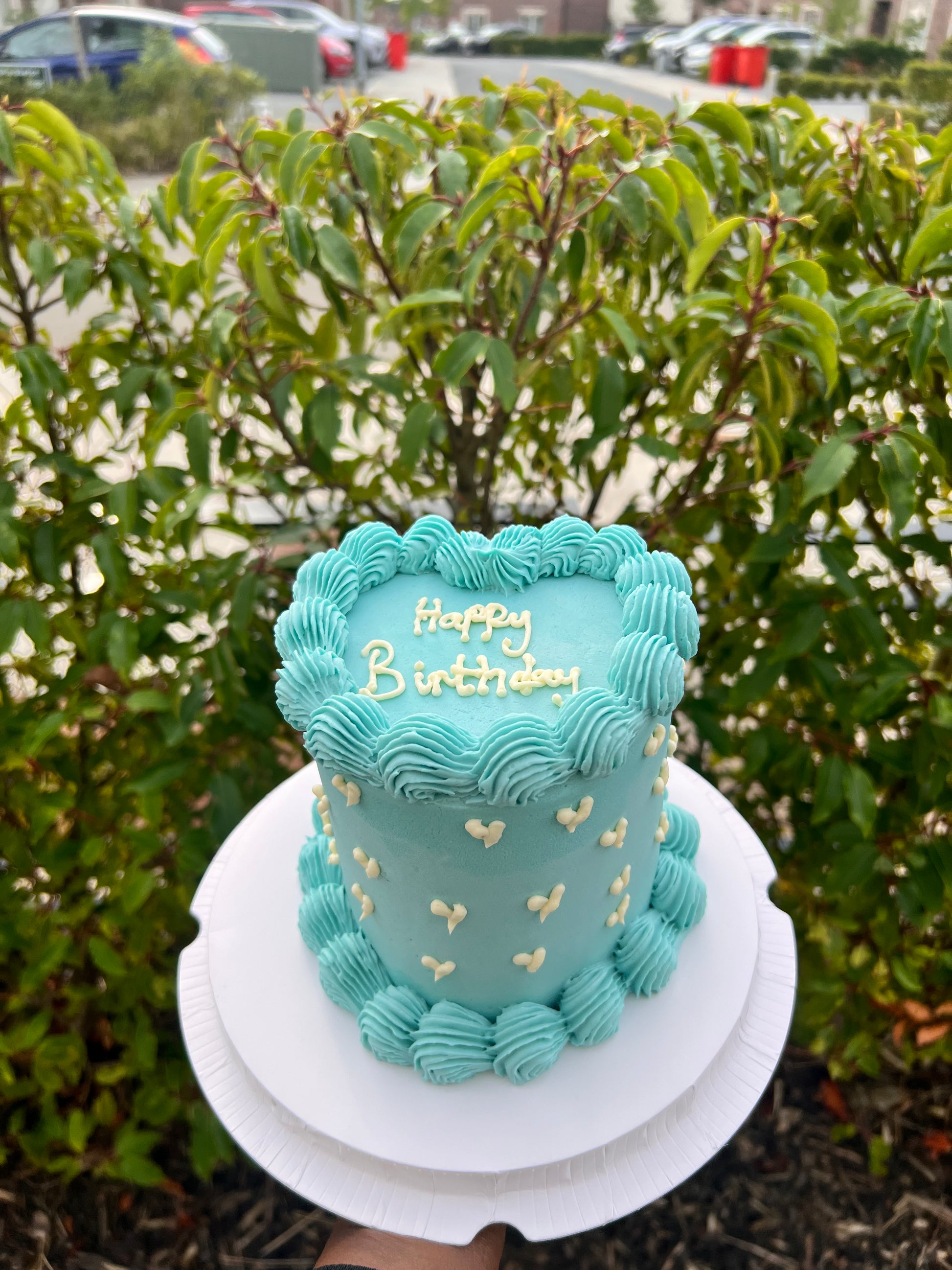 Celebrate with love! Our 5-inch heart-shaped bento cake is a sweet and stylish treat, perfect for intimate celebrations. it’s ideal for birthdays, anniversaries, or just to show someone you care. Customize it with your favorite flavors, colors, and a heartfelt message! SERVES 6-7.BUTTERCREAM CAKE