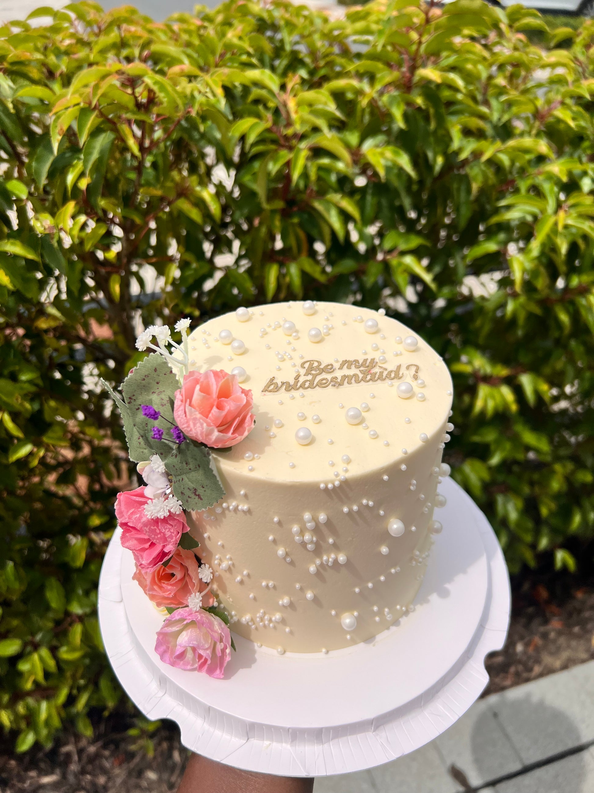Our adorable 5-inch bento cake is the perfect personal-sized treat for any occasion! This compact delight is ideal for birthdays, anniversaries, or just because. Packaged in a charming bento box. SERVES 6-7.BUTTERCREAM CAKE