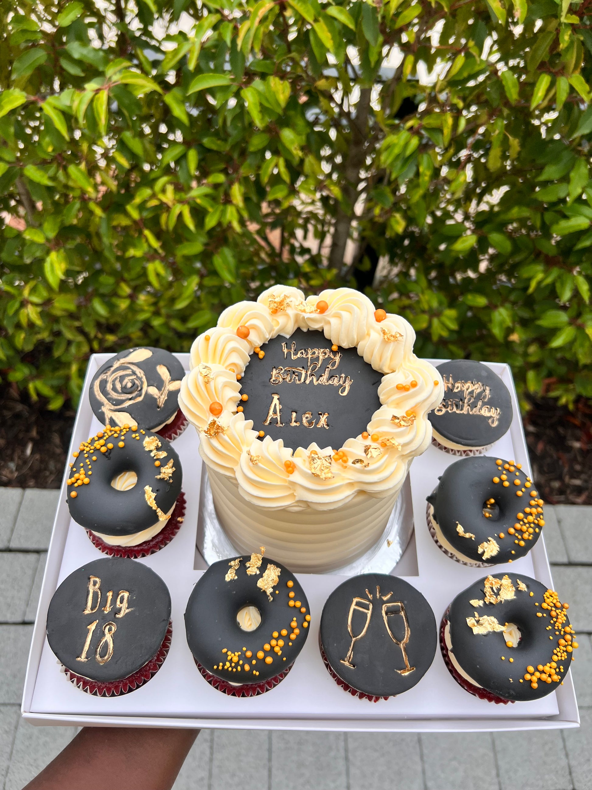 Small in size, big on joy! This adorable Bento Cake Set comes with a 5” cake and 8 cute cupcakes to match. It’s perfect for mini parties, surprise gifts, or treating yourself just because. Customizable and totally delicious!